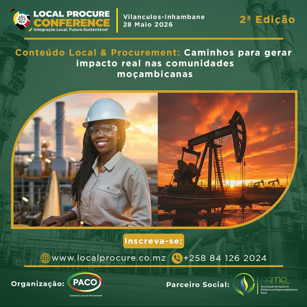 A 2ª edição da nossa conferência chega com o compromisso de gerar impacto real nas comunidades moçambicanas. Reuniremos governo, empresas, projectos, fornecedores locais e especialistas para discutir caminhos práticos para fortalecer o conteúdo local e melhorar as práticas de procurement no país.
